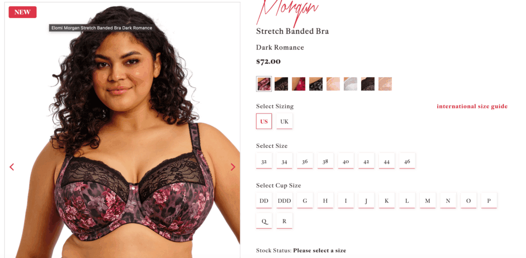 Eloni is a name that came up again and again in my research for larger bra sizes for t-shirt bras, and I can see why. They have the widest range of sizes for larger busts and bands of any on this list, offering bands from 32 up to 46 and cups from DD to O.