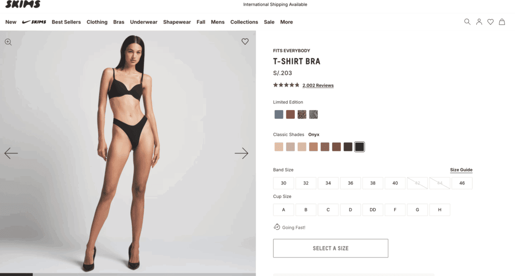 The SKIMS Fits Everybody T-Shirt Bra in particular gets an A+ in color inclusivity, offering 8 different skin tones. Size inclusivity is pretty good too, with band sizes ranging from 30 to 46 and A to H.